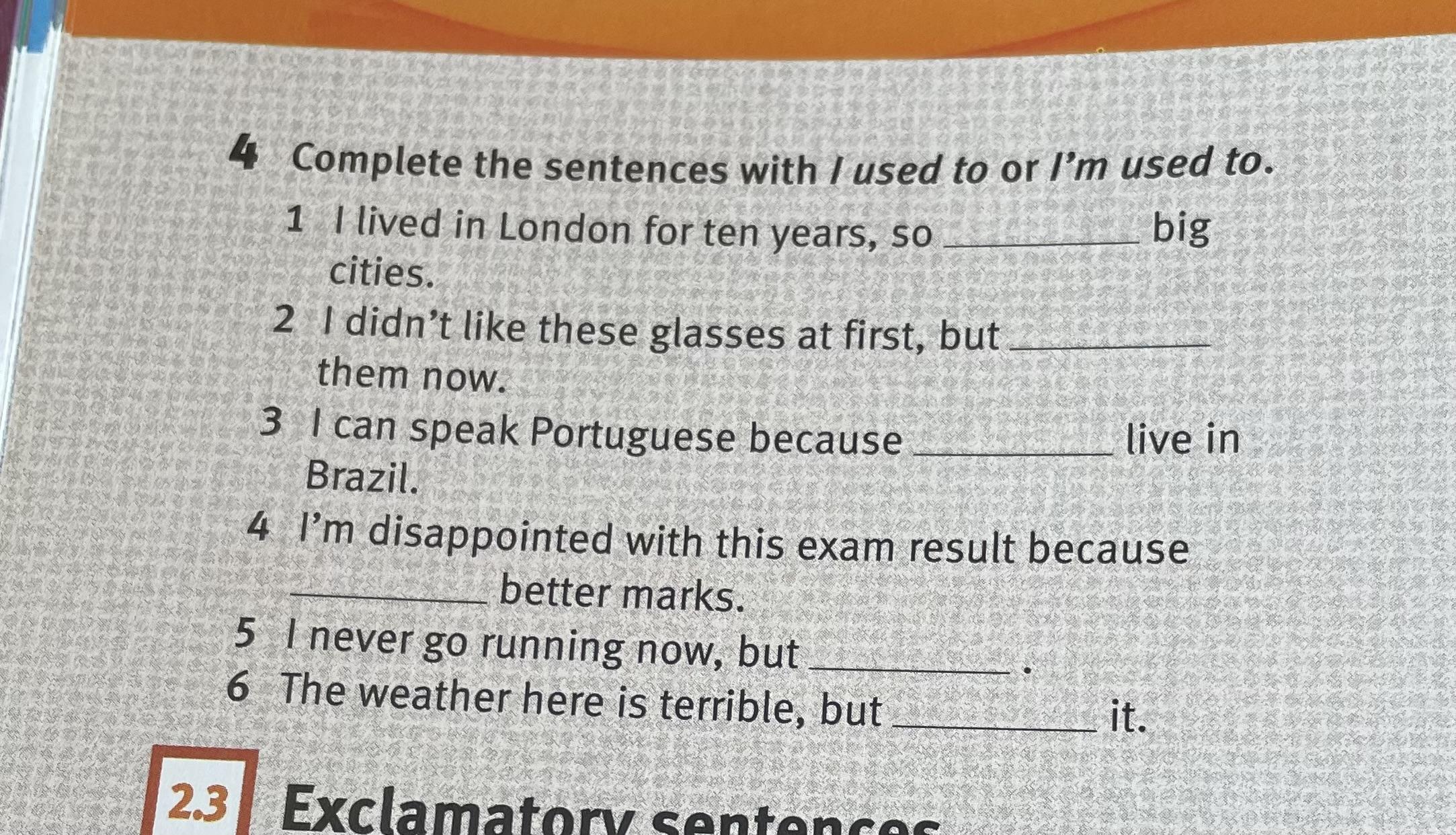 4. I'm disappointed with this exam result because I'm used to better marks.