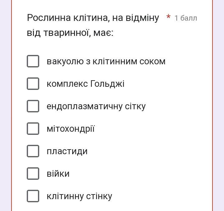 Рослинна клітина, на відміну від тваринної, має хлоропласти, клітинну оболонку, велику вакуолю з клітинним соком. Тваринна клітина, на відміну від рослинної, має органели, у яких здійснюється внутрішньоклітинне травлення, — лізосоми.