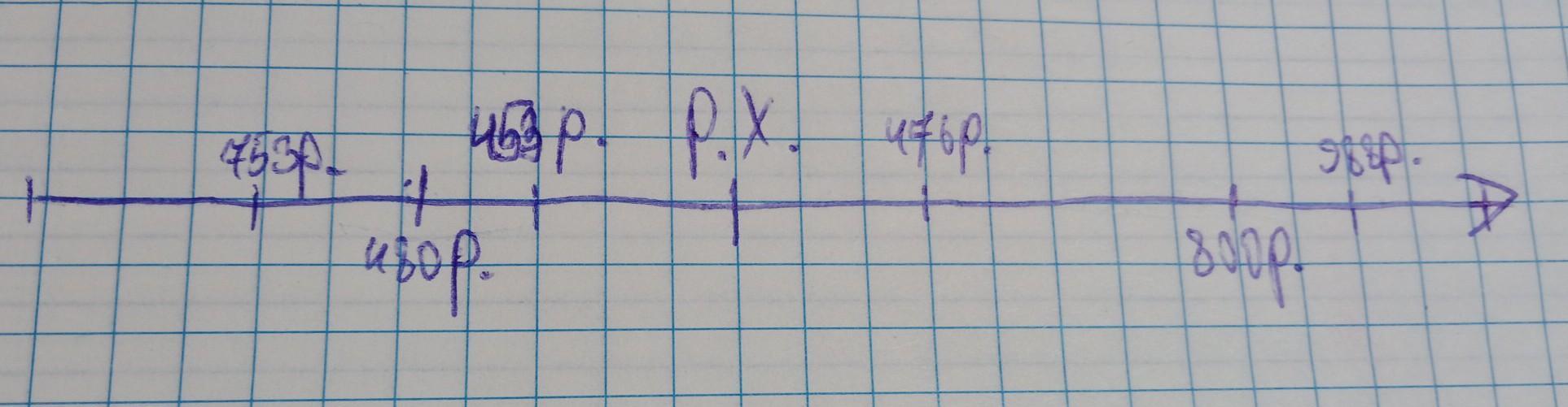 1. Розташуйте на лінії часу дати: 988р., 476 р., 453 р. до н.е., 800 р., 753 р. до н.е., 480 р. до н.е.