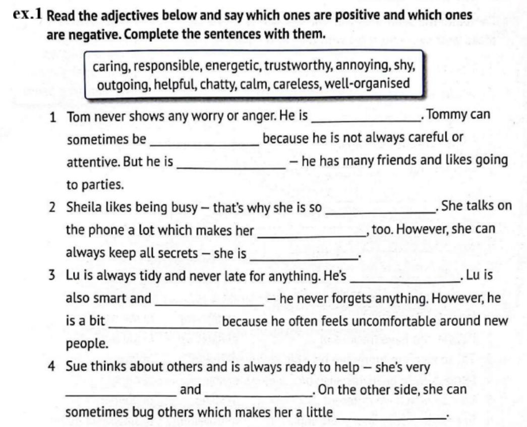 1. Tom never shows any worry or anger. He is sometimes caring. But he is careless. Tommy can be helpful because he is not always careful or responsible - he has many friends and likes going to parties.