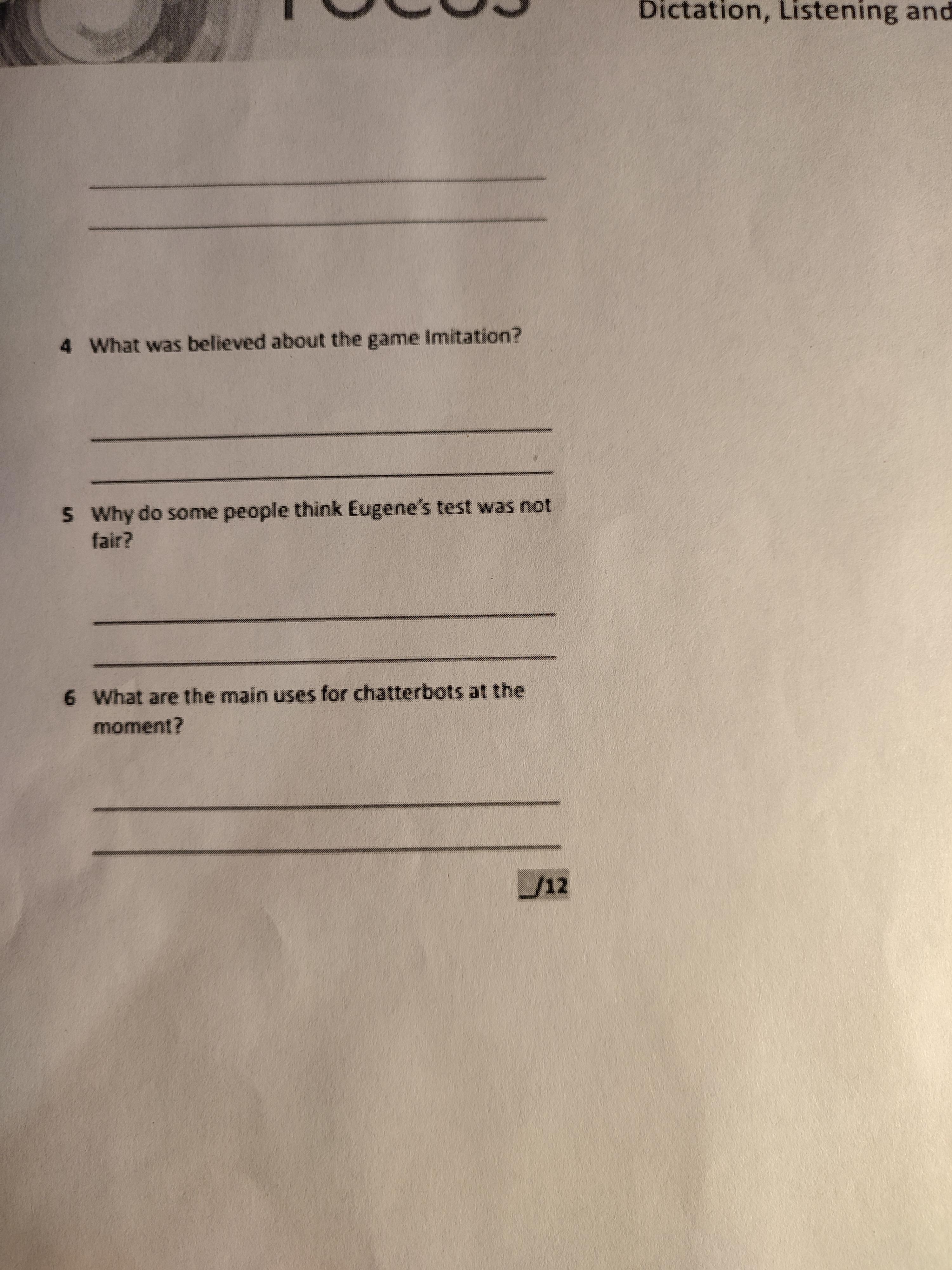 3. To pass the Turing test, a computer program needs to persuade 30 percent of the people reading or listening to its answers that it is human. The program must be able to mimic human conversation and convince judges that it possesses intelligence similar to that of a human, even if it cannot think or learn like a real human being.