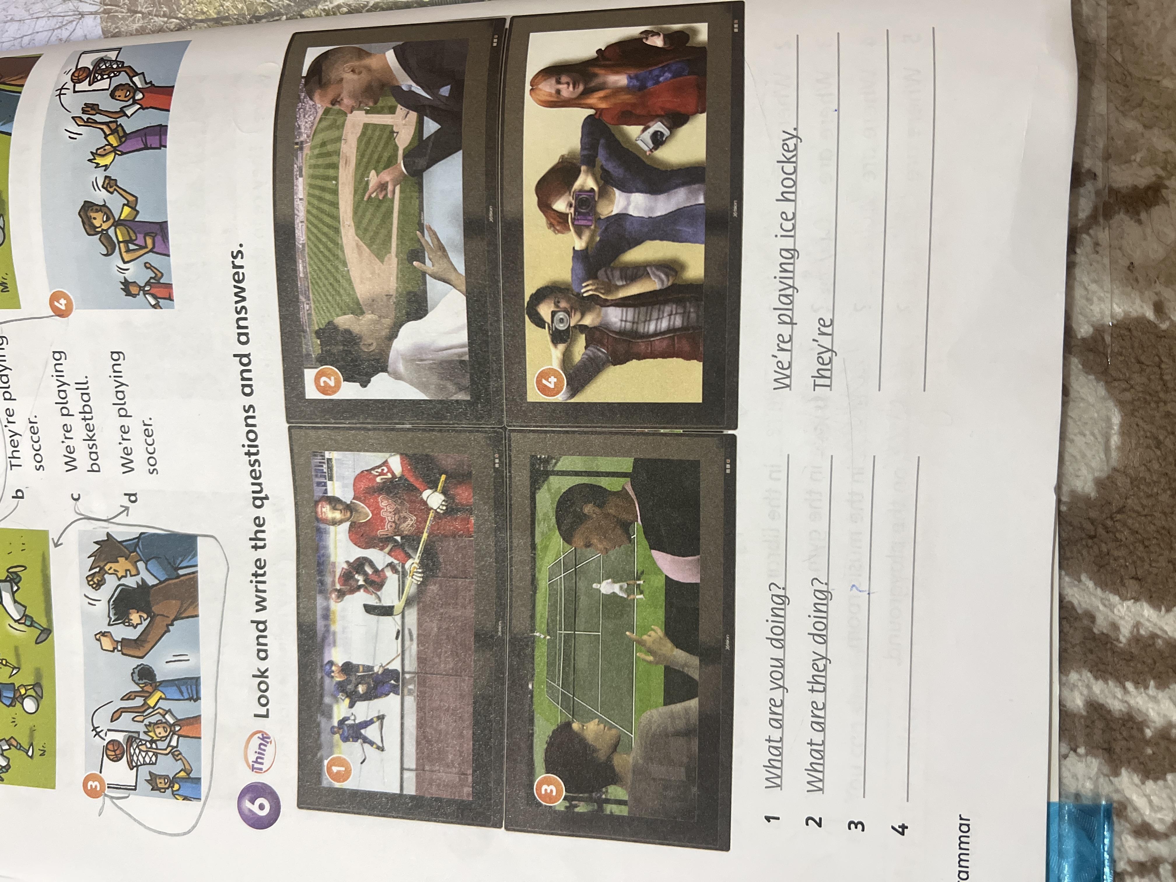 3.What are they doing?-They are watching TV