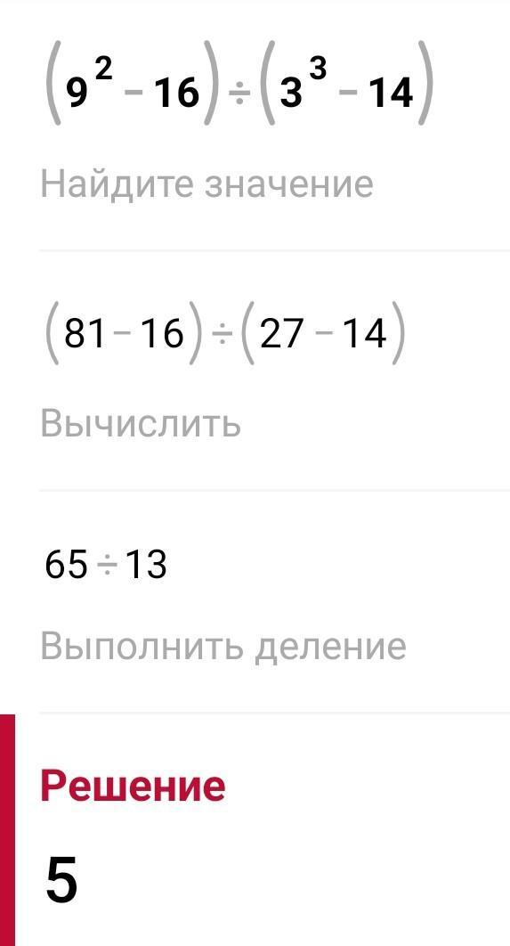 (9²-16):(3³-14)=(9•9-16):( 3•3•3-14)-65:13=5