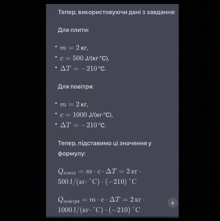 Обчисливши ці вирази, отримаємо кількість теплоти, яка перейде з плити в повітря.