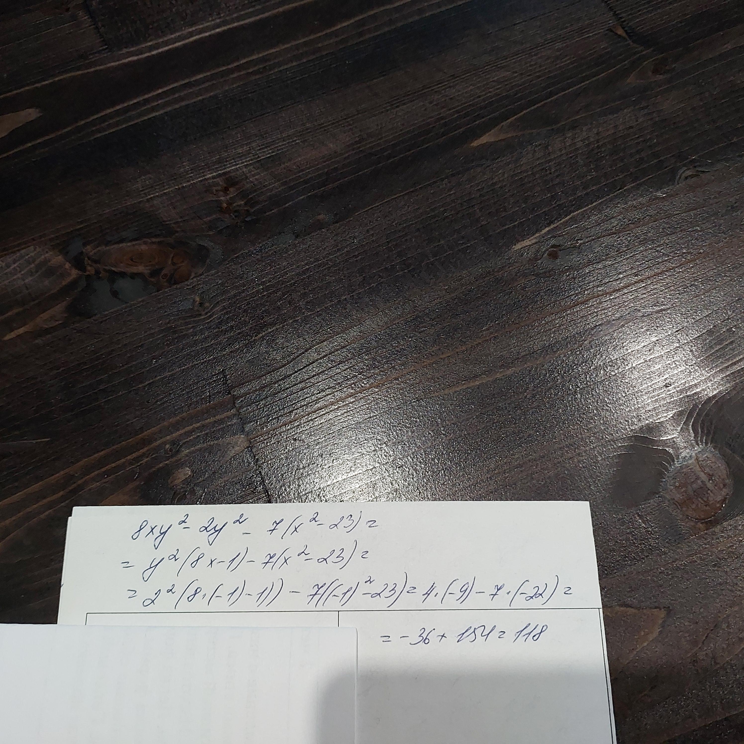 6. Спростіть вираз і знайдіть його значення 8xy 2 - 2y²) - 7*(x²-23), якщо x=-1, у=2 даю 80 балив