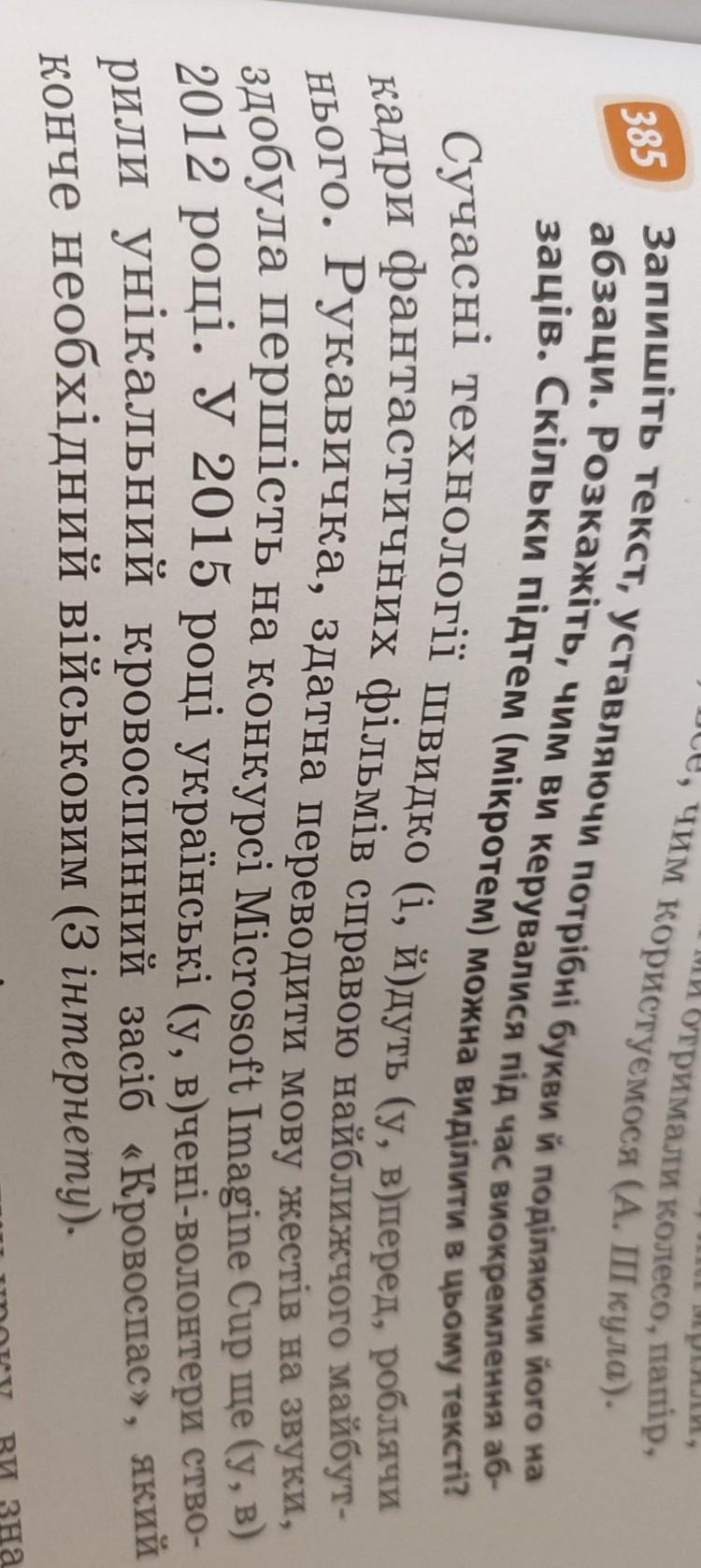 (абзац) Рукавичка, здатна переводити мову жестів на звуки, здобула першість на конкурсі Microsoft Imagine Cup ще у 2012 році.
