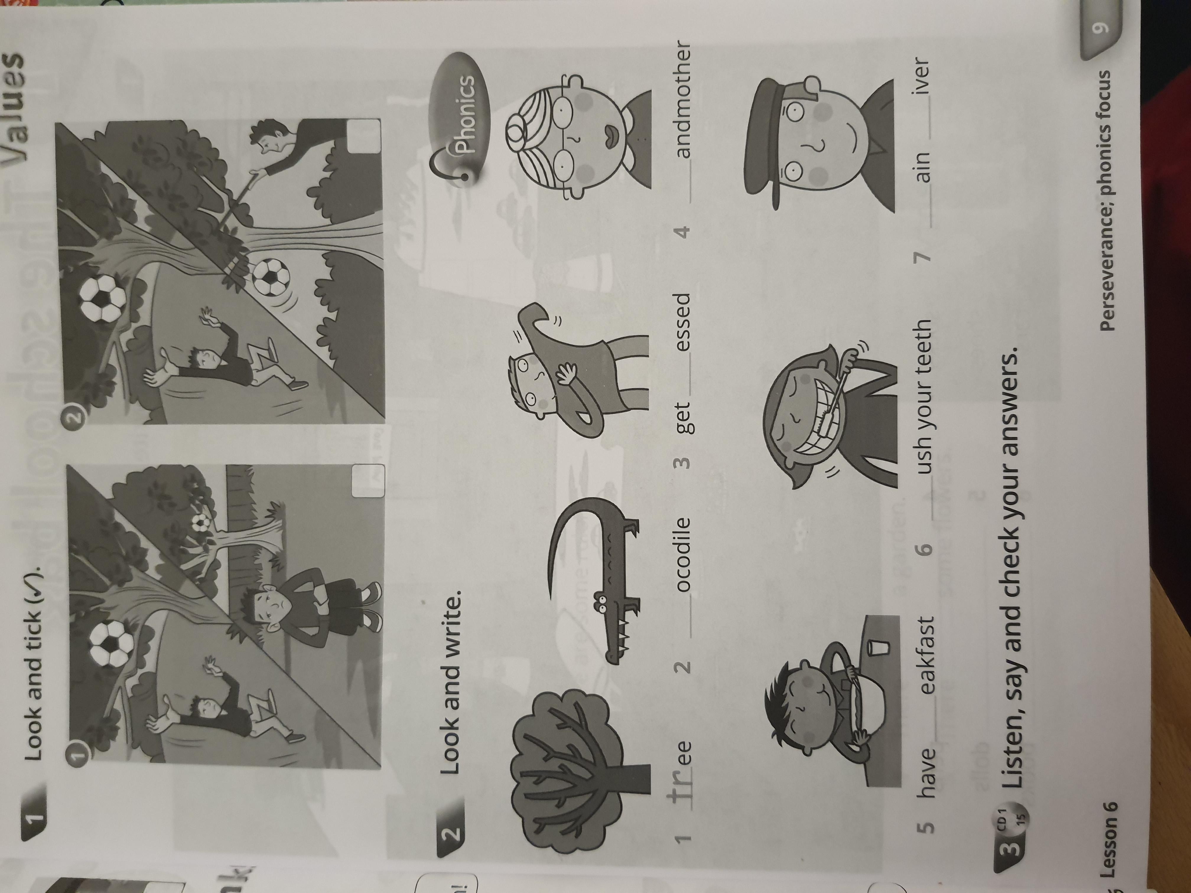 Ответ:2. crocodile 3.get dressed 4.grandmother 5. have breakfast 6.brush your teeth 7.
