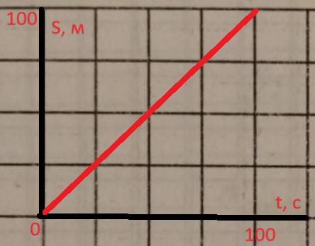 Карлсон вилетів зі свого даху в горизонтальному напрямку з швидкістью 1 м/с і долетів додому Малиша. Визначити час, який він затратив, якщо він летів по прямой лінії 100 м. Намалювати графік залежності шляху від часу