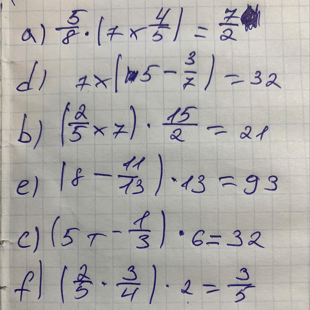 a) 2/7 b)21 c) 32 f) 3/5 d) 32 e) 93