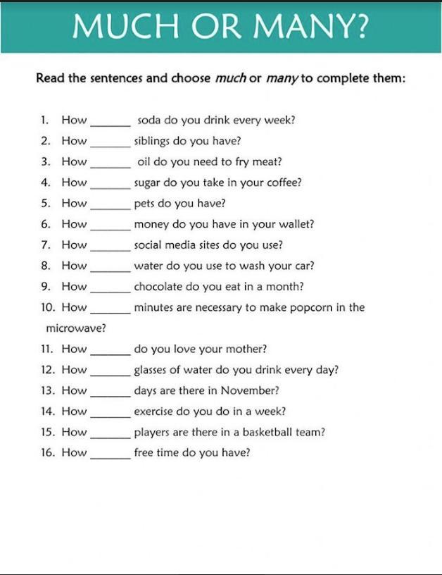 1 MUCH 2 MANY 3 MUCH 4 MANY 5 MUCH 6 MANY 7 MUCH 8 MANY 9 MUCH 10 MANY 11 MUCH 12 MANY 13 MANY 14 MUCH 15 MANY 16 MANY
