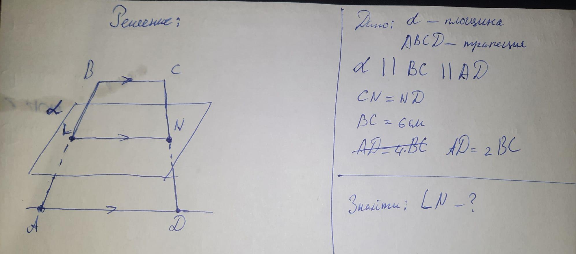 якщо N – середина сторони CD, BC = 6 см, а довжина AD у два рази