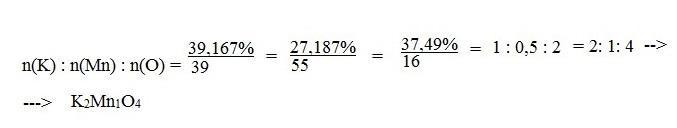 Бирикменин курамы 39,167%калийдин ,27,187%марганецтен жана 37,49ымарганецтен турат, ушул бирикменин курамын туюнткан формуланы түзгүлө.
