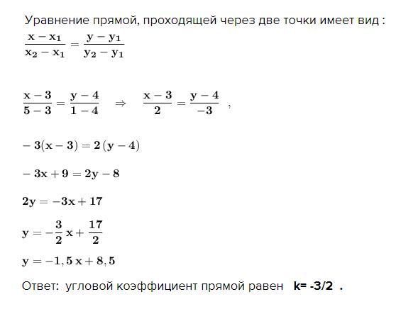Ответ: угловой коэффициент прямой равен k= -3/2 .