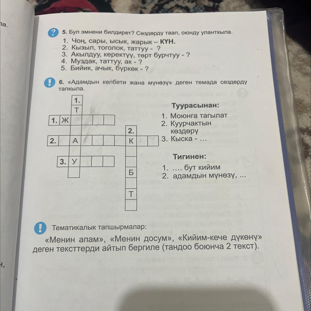 16. «Адамдын келбети жана мүнөзү» деген темада сөздөрдү