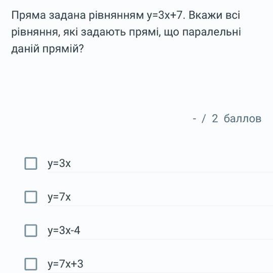 Прямые параллельны, если перед "х" стоят одинаковые коэффициенты