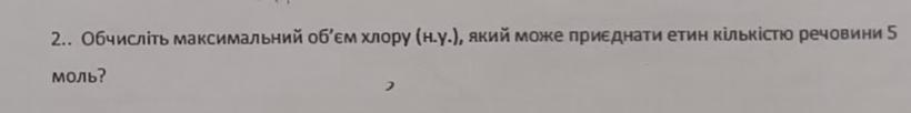 3) V(Cl2) = n(Cl2) * Vm = 10 * 22,4 = 224 л.