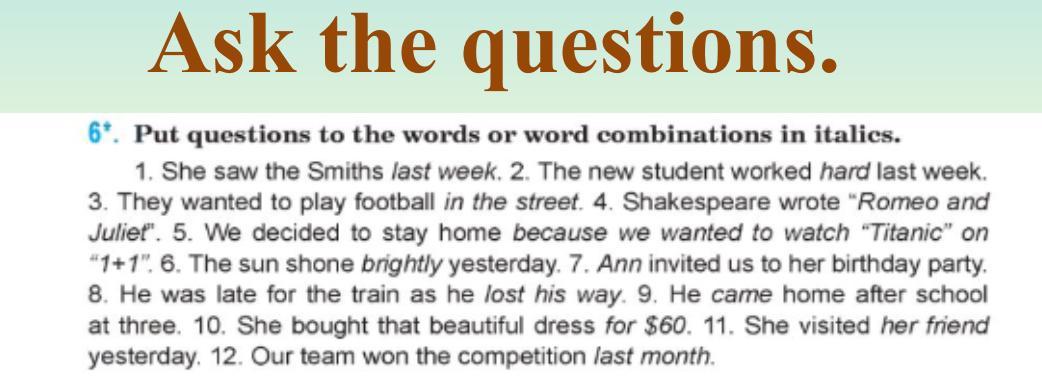 Даю 25 балов ПОмогите , СРУЧНО , надо написать предложения как вопрос