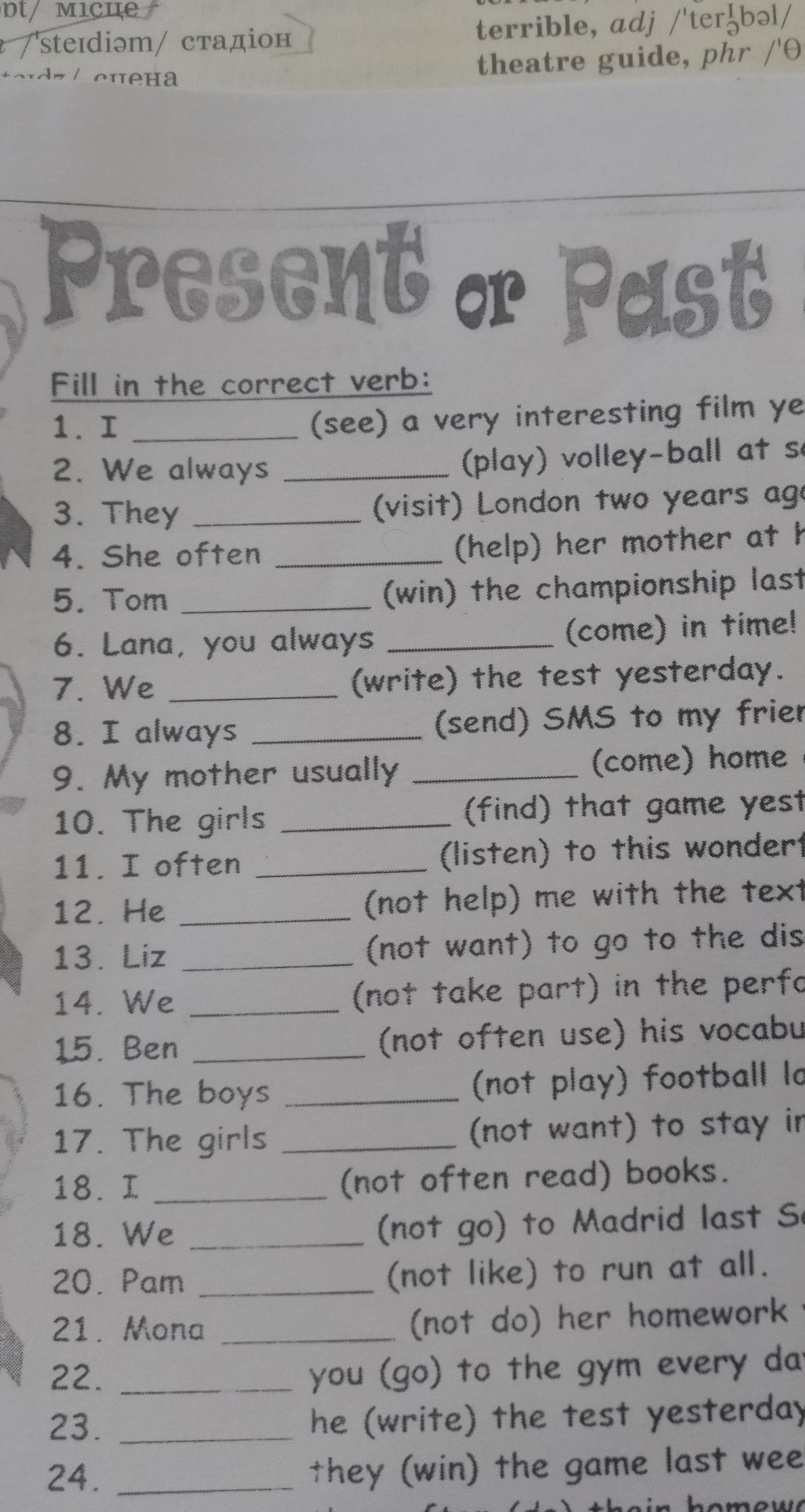 17. The girls (not want) to stay in the gym yesterday. didn't want