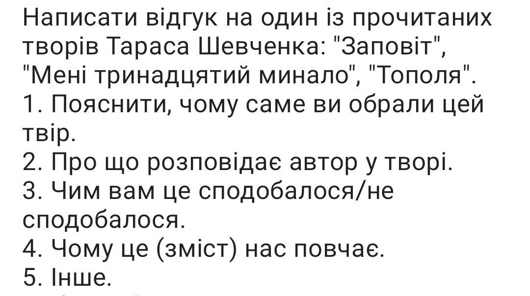 3. Мені цей твір сподобався через його величний патріотичний дух та могутню силу слова, яка в ньому втілена. Тарас Шевченко виріс на свідках подій, які вплинули на долю України, і його страстна глибока поезія завжди надихає.