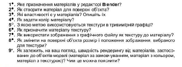 3. властивості матеріалів включають колір, блиск, прозорість, текстури, налаштування тіней, і багато інших параметрів, що визначають зовнішній вигляд об'єкта.