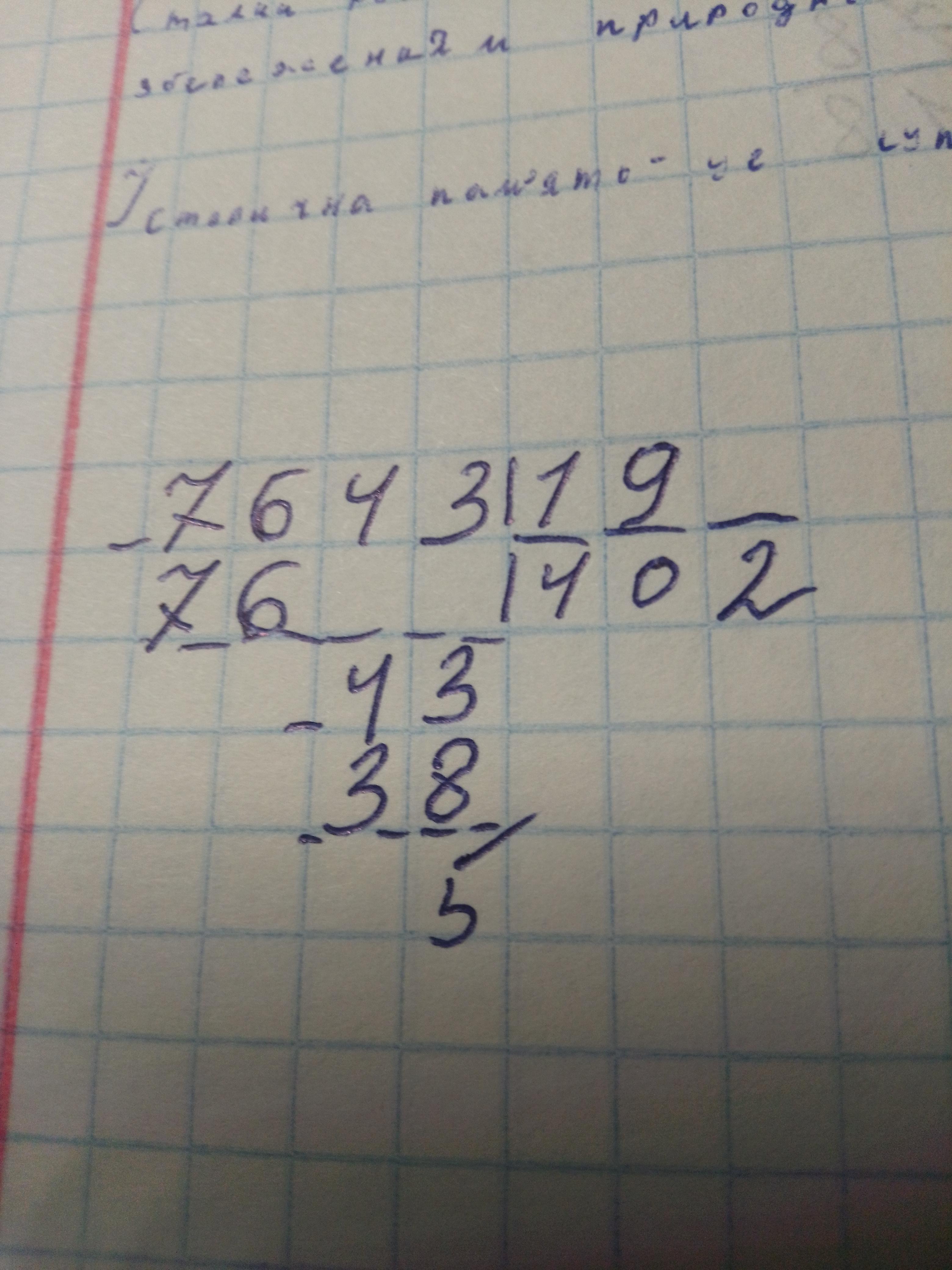 4) 7643 : 19.