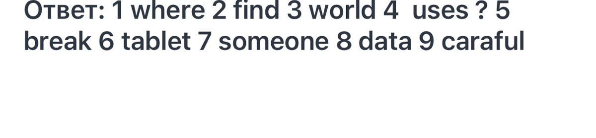 Ответ: 1 where 2 find 3 world 4 uses ? 5 break 6 tablet 7 someone 8 data 9 caraful