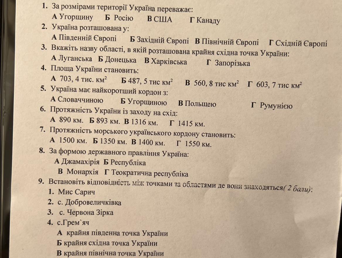 3. Вкажіть назву області, в якій розташована крайня східна точка України: