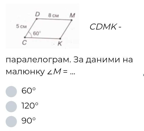 У паралелограмі протилежні кути рівні, тобто ∠C=∠M=60°
