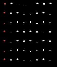 Розмістіть 16 зірочок у чередуючому порядку на білому та чорному полях шахової дошки (враховуючи, що на початку потрібно почати з чорної або білої клітинки).