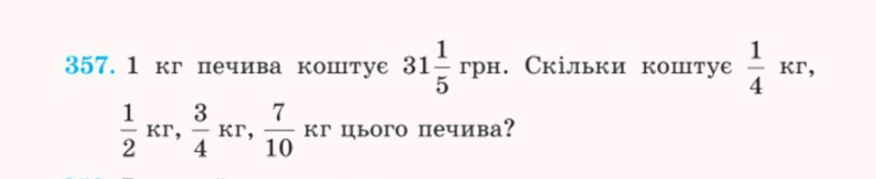 31 1/5 × 1/4= 156/5 × 1/4=156/20=7,8 грн за 1/4 кг