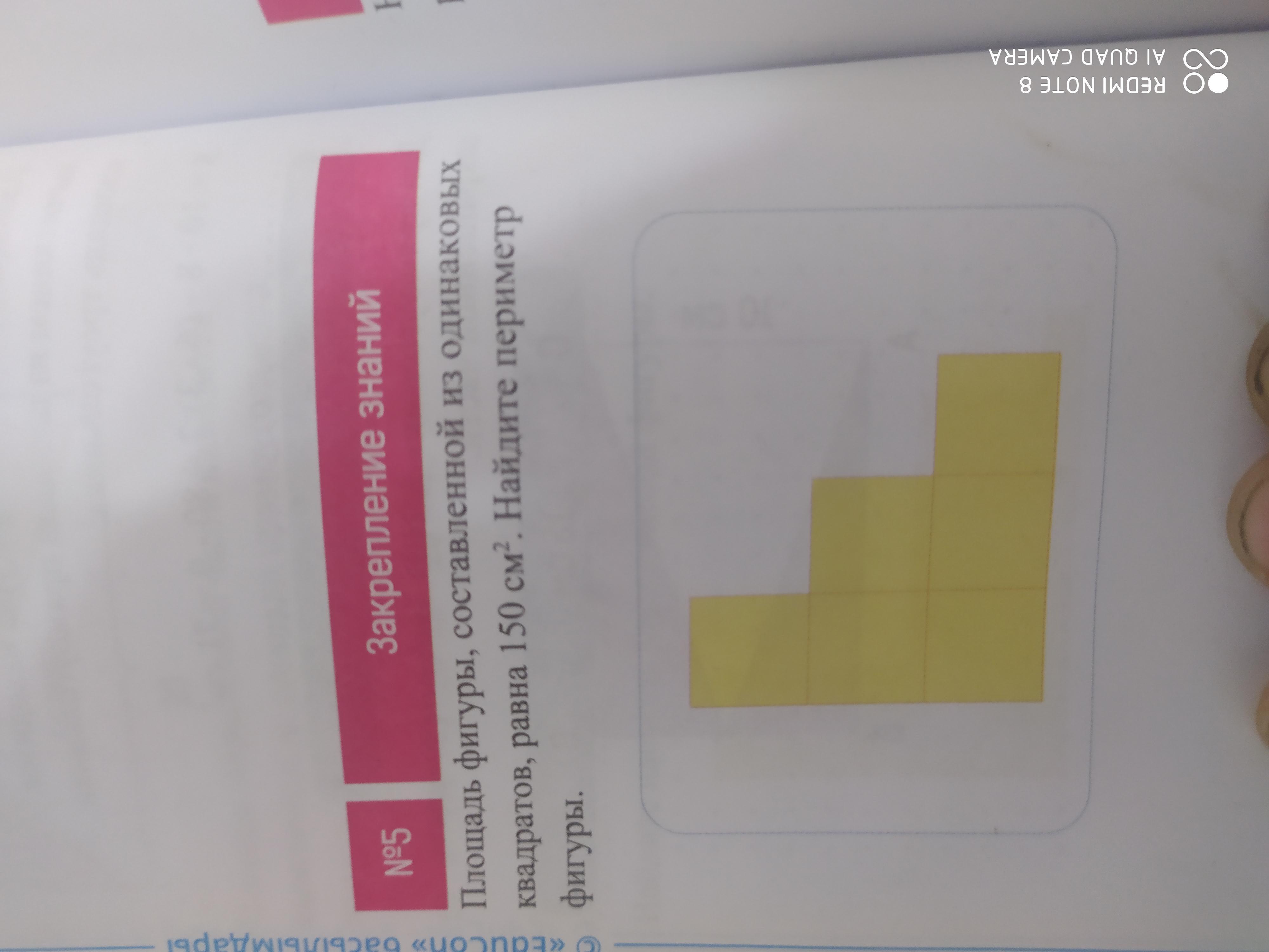 Один квадрат 25 см2(150:6)а там 3 квадрата тоесть 75см2