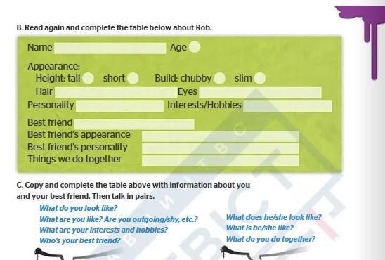 Номер C.- Запишіть у зошити інформацію про себе та свого друга (у формі таблиці вище-як в номері В.)
