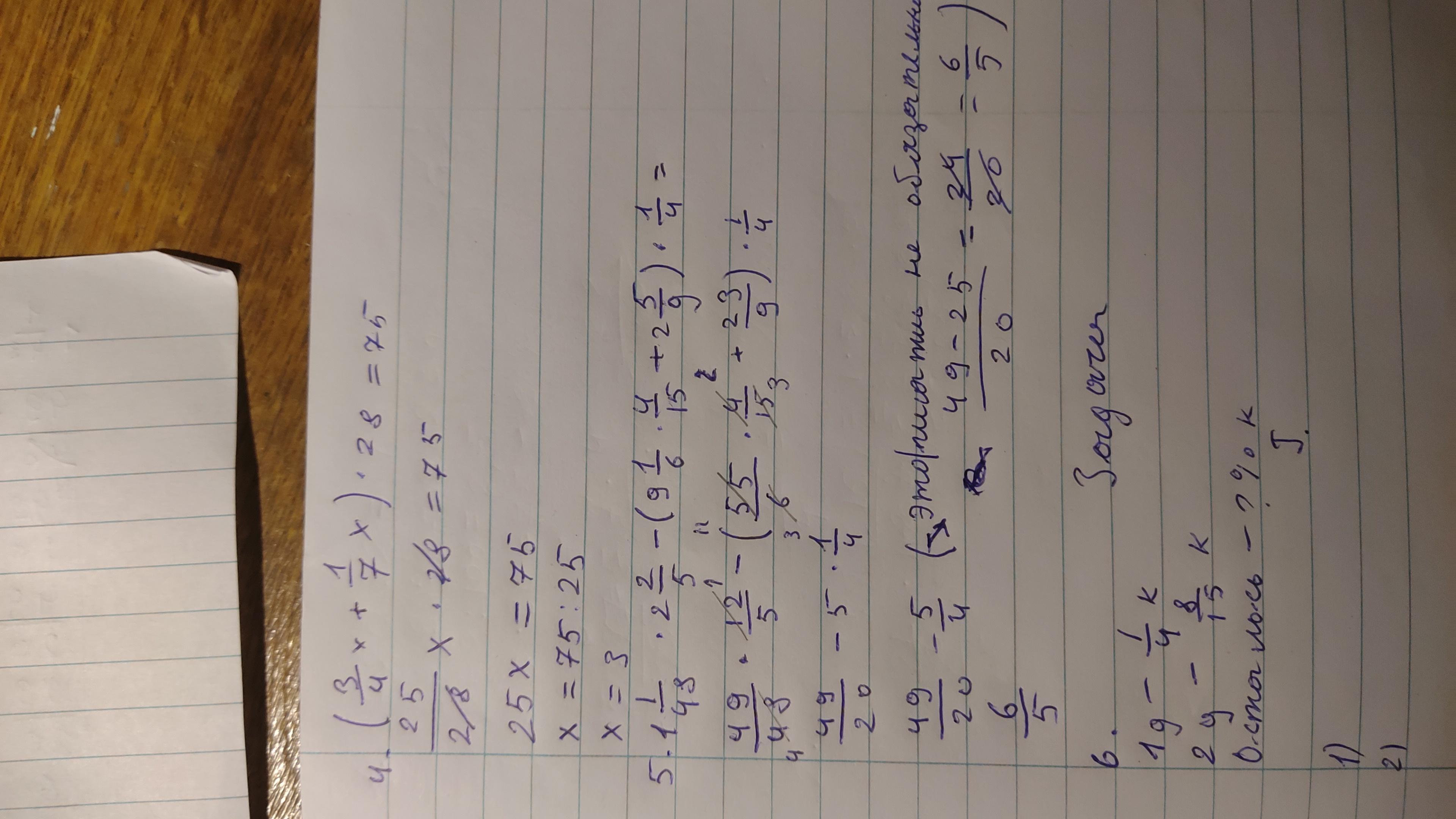 1) 3/4 х + 1/7 х(общий множитель 28) = 3*7/28х + 1*4/28х = 21/28х+4/28х = 25/28х