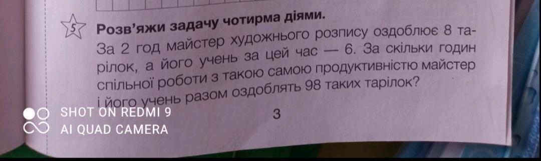 Зміни умову попередньої задачі так, щоб її можна було розв'язати двома діями. Запиши коротко умову й запи тання. Розв'яжи задачу.