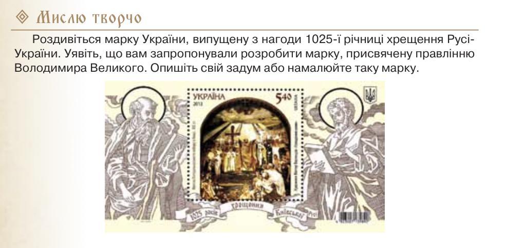- Така марка була б символічним вшануванням Володимира Великого як правителя, який привів християнство до Київської Русі і сприяв об'єднанню та розвитку культури.