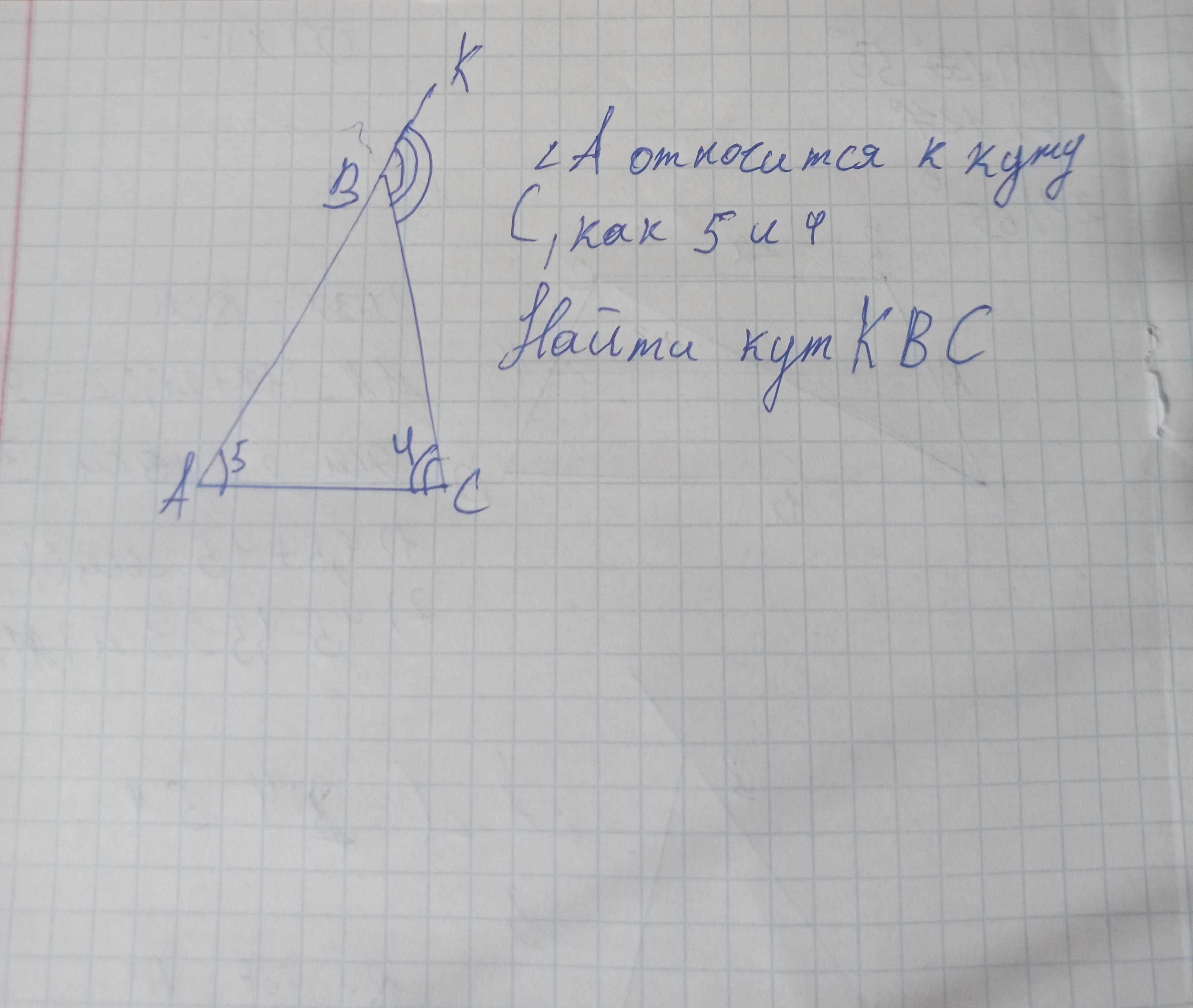 ∠KBC= ∠A + ∠B = 90° + 18° = 108° (за теоремою про зовнішній кут трикутника).