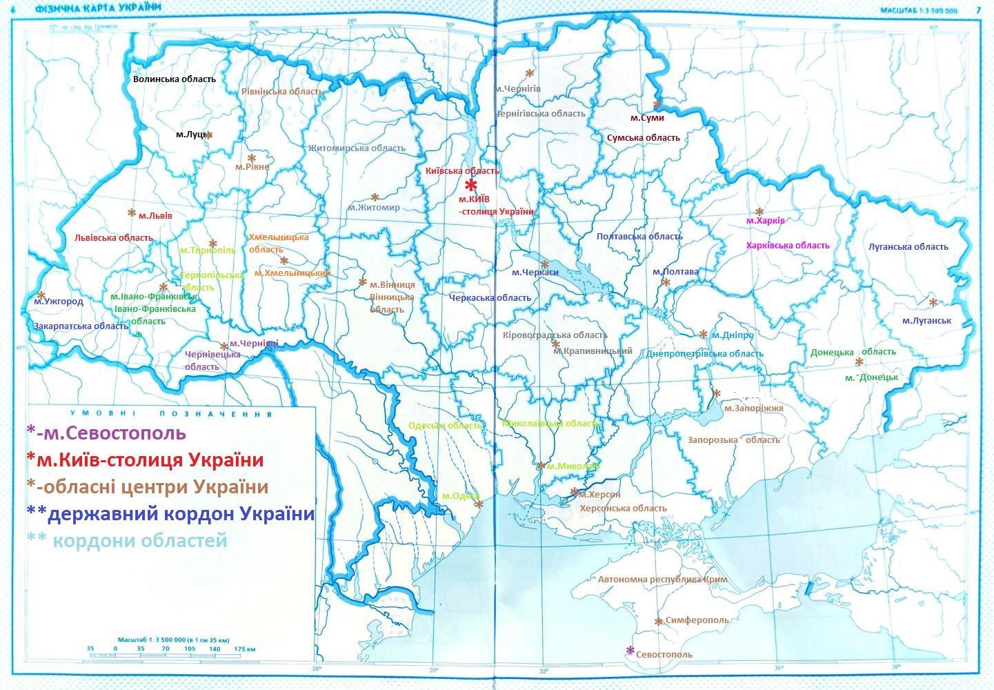 позначення зробила на контурній карті,
