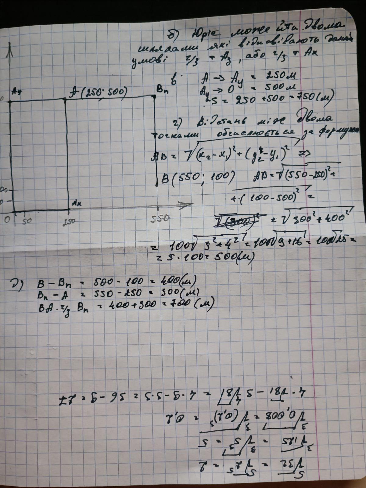(250 м; 500 м), а резиденция Мартиньша – точка Б (550 м; 100 м).