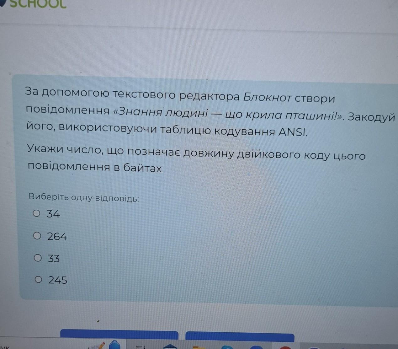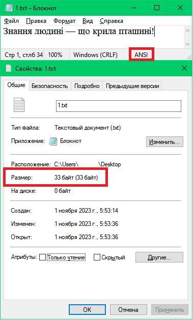 За допомогою текстового редактора Блокнот створи повідомлення «Знання людині — що крила пташині!». Закодуй його, використовуючи таблицю кодування АNSI