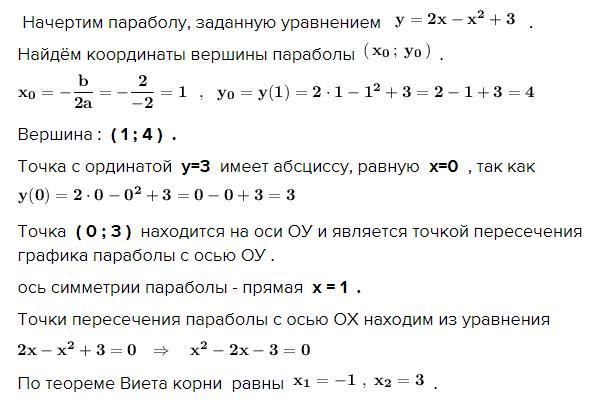 Точка ( 0 ; 3 ) находится на оси ОУ и является точкой пересечения графика параболы с осью ОУ .