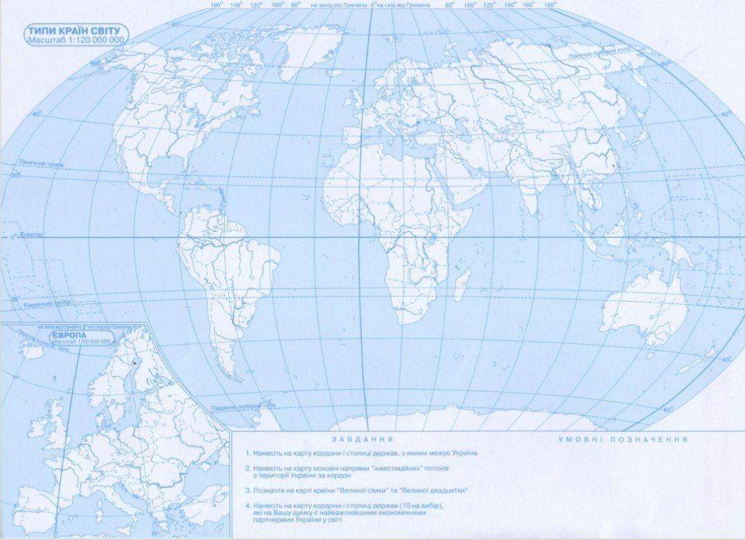 2. За допомогою різних кольорів або штрихування виділіть серед них розвинені країни та країни, що розвиваються.