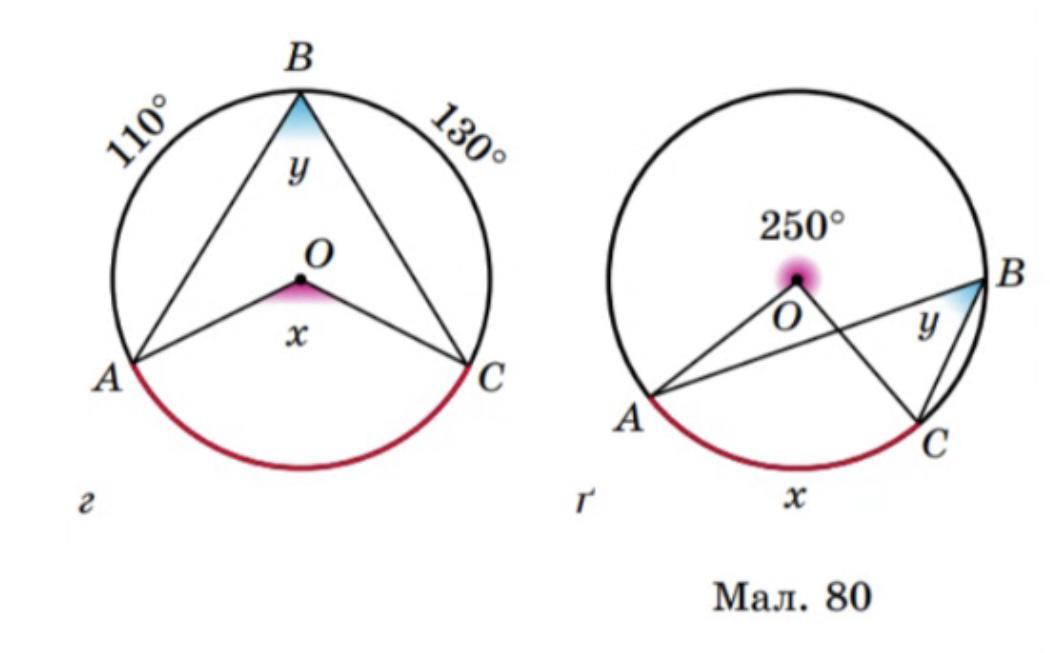 х=360°-130°-110°=120° центральний кут, дорівнює градусній мірі дуги на яку він спирається