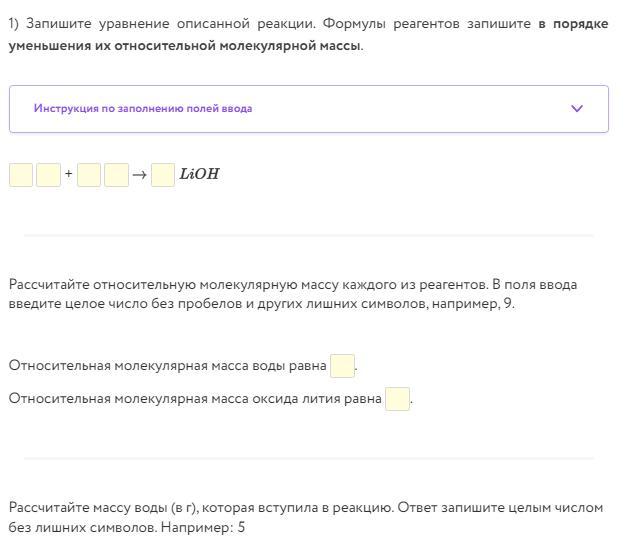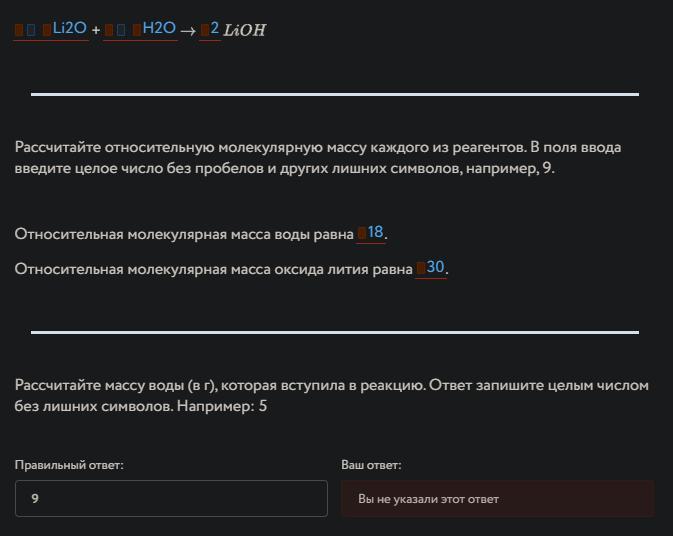 Оксид лития массой 15 г полностью прореагировал с водой. В результате реакции образовалось 24 г гидроксида лития (LiOH)