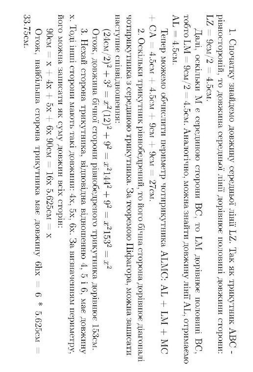 3.Середні лінії трикутника відносяться як 4 5 6. Знайдіть найбільшу строну трикутника, якщо його периметр дорівнює 90 см