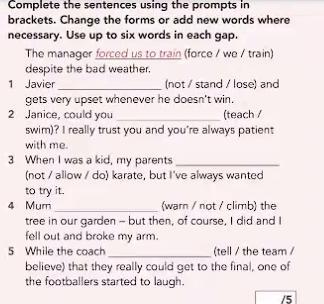 Complete the sentences using the prompts in brackets. Change the forms or add new words where necessary. Use up to six words in each gap.