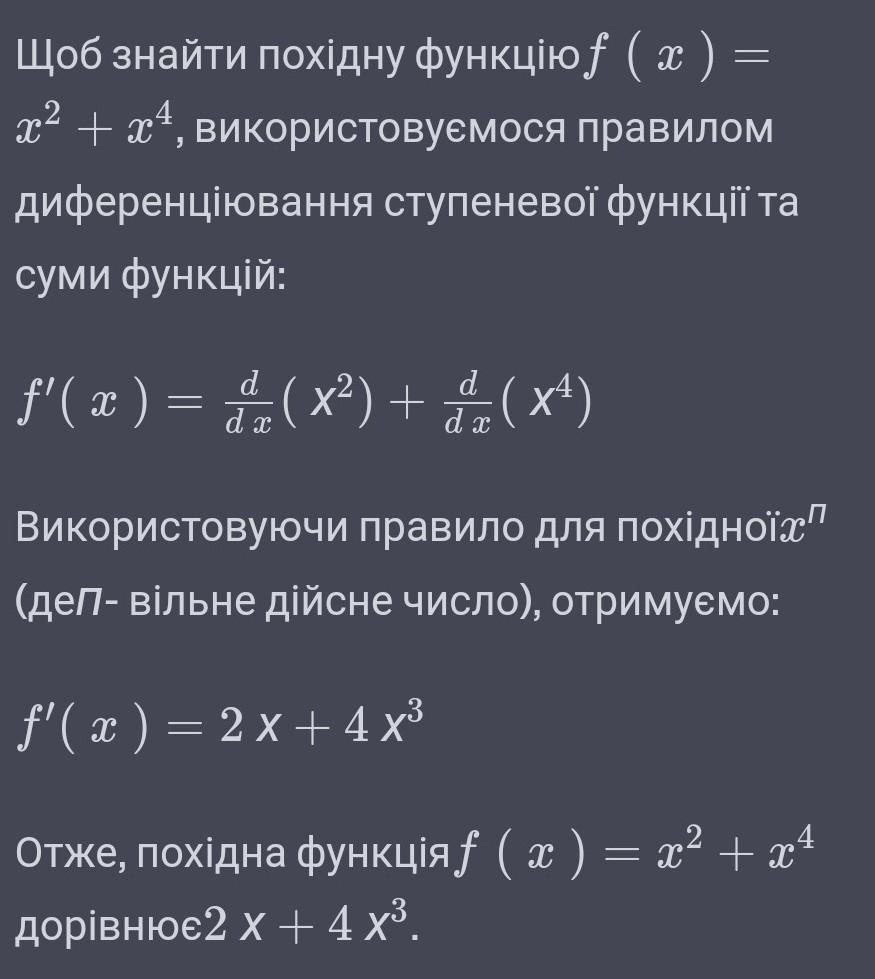 Щоб знайти похідну функцію
