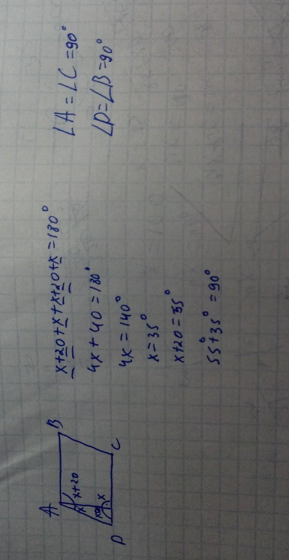 x+x+20+x+x+20=180°
