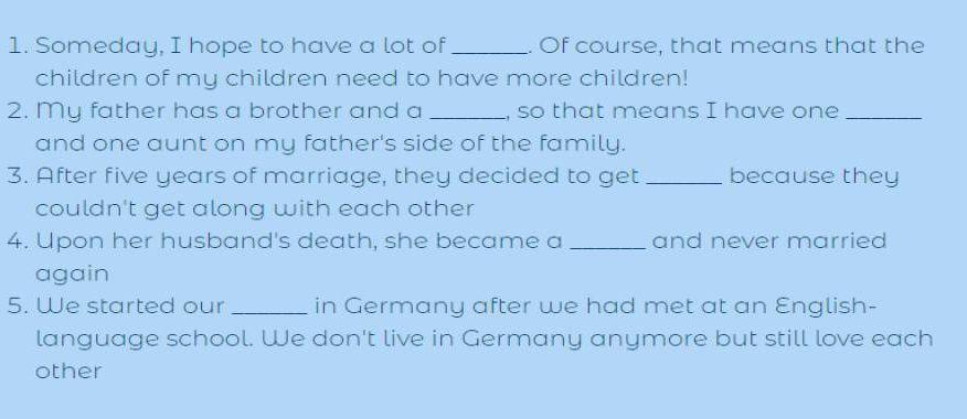 5. We started our relationship in Germany after we had met at an English-language school. We don't live in Germany anymore but still love each other.