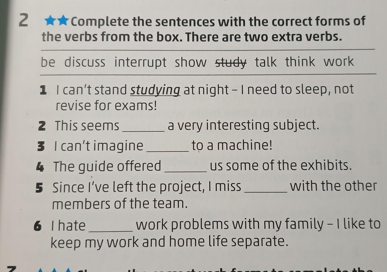 2. Complete the sentences with the correct forms of the verbs from the box. There are two extra verbs.