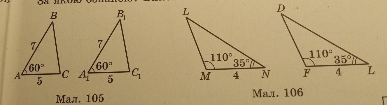 СРОЧНО!!ДАЮ 50 БАЛЛОВ. Трикутники на малюнках рівні між собою. за якою ознакою? виконайте в зошитах відповідні побудови та записи.малюнки в зошитах виконати за вказаними розмірами